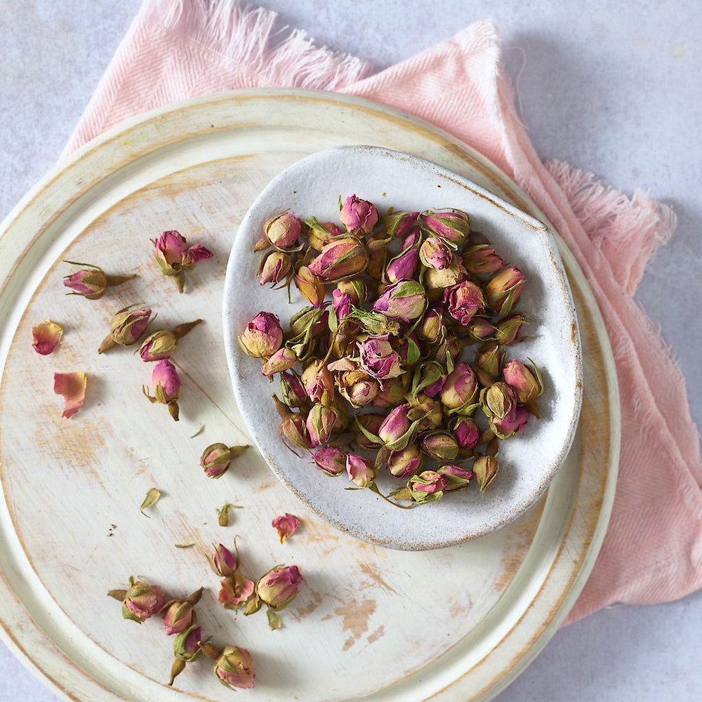 Use these dried rose buds to make your own caffeine-free herbal tea, pamper yourself with a rose ...